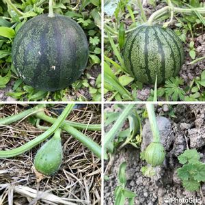 GW2日目⛅️、スイカ🍉苗🌱2品種計8株とメロン🍈苗🌱1品種計3株を植えた🥵💧。 今シーズンも「パカっ!🔪」との季節が始まるねー💪。