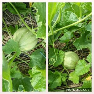久しぶりにチャレンジ中のメロン🍈、たまご🥚サイズに😊。うどんこ病に侵された葉を常時摘んではいるがやっぱり難しいねー。 スイカ🍉は、メロン🍈よりもひと回り小さい。昨年と思うと完全に出遅れているね😢。