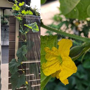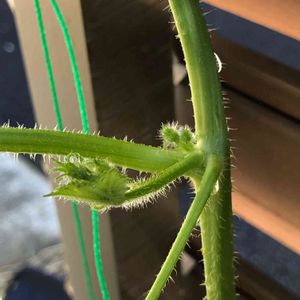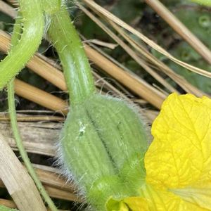 プリンスメロン 袋栽培中のメロン🍈 雌花が咲きました!二つ咲きましたので、両方とも受粉させました。 立派な雌花と、ツルです。 これは、期待大です^ - ^
