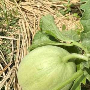 開花🌼後1か月程経過の畑のメロン🍈、大きくなってきた😊。あと2週間程で収穫出来るだろか?🤔。葉の枯れも出てきて丸見え^_^💧、甘〜い香りが漂い始める前に鳥獣対策を施さなければ、ヤバい😱。