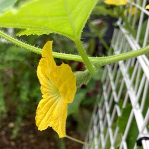 プリンスメロンの雌花が咲きました✨✨✨ プックリ果実に成長します様に🙏❤️❤️❤️🙏 人工授粉もしましたが、雄花も沢山咲いてるので虫さん達も手伝ってくれそうです🎵