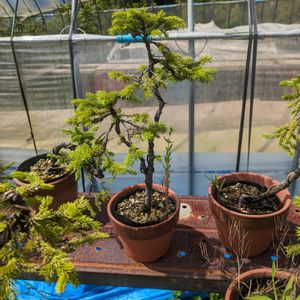 エゾマツが山採りができなくなり、 四半世紀以上経ちました。 この樹はすべて15年以上前に 実生をした樹です。 痩せ造りのため、 幹は太っていませんが、 山木のような風合いがあります。 年数をかけて栽培した樹ですが、 一鉢1000円です。 需要と供給で値段はつきますが、 余りに安すぎるため、買い支えたいと 思いました。 黒松や真柏のように 海外にも人気がある樹なら 土地を変えても永く持ち込む ケースもあるでしょう。 でも、マイナーな樹ですと 浮かばれません。 盆栽は培養期間がかかる園芸です。 未来を創る樹をつくり、 その樹の評価は50年後ぐらい後になります。 仕上がった樹が海外にいくのは 時勢だと思いますが、 未来の樹を創る支えはしたいと 思いました。