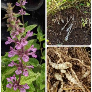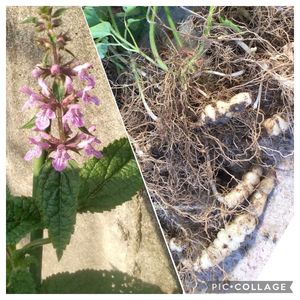 チョロギ シソ科 イヌゴマ属 左側の写真は6/17upしたご近所のチョロギの花です。 今日は収穫体験させていただきました♪ 土を掘り起こすとイモムシのような姿のチョロギが出てきました! 素揚げにして塩をまぶして食べると美味しいそうなので作ってみようかな?