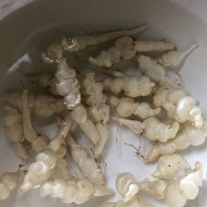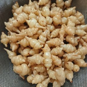 「チョロギ」を買いました☺️ セリアで見つけた梅酢漬けのチョロギに娘がドはまり。それなら作ってみようと思ったのですが、関西では見たことがありません。ちょうど今がシーズンみたいだったので、メルカリで購入。 1つ1つ丁寧に土を洗うのが手間ですが、初めての野菜にワクワクしました。 今からだとお節料理の黒豆に使えそうで楽しみです💕
