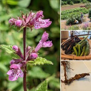 モンチッチおばさんと夫と私の3人でソクズの花を見た後で~畑に行きました♡🎶 ↗…花友さんと仲良しモンチッチおばさんが畑の野菜を収穫して下さっています👍 私は何もしないで~袋を開けて…立ってるだけ(^^ゞ💦 →…キュウリ、ナス、トウガラシを沢山頂きました🥒🍆🌶 ←と↘…チョロギのお花と根にできる塊茎 チョロギだよ!!と言って抜いて見せてくれました(^^) 収穫は11月頃とか~初めて見ました😲 お節の黒豆の上にのっかってる~赤い巻き貝みたいなアレ…デス!! 畑で採れるってびっくり~😲デス チョロギ(シソ科) イヌゴマ属