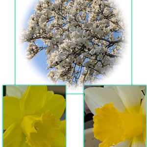 黄色いお花集合🌼 ・ラッパ水仙➡️ ・たんぽぽ⬇️ ・ミニラッパ水仙⬅️ ・サンシュの花 今‥自宅の庭に咲く🌼 元気がでる黄色の花達🤗
