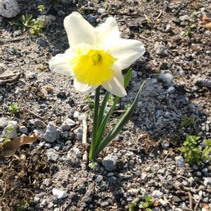 孫娘とお散歩中 空き地にポツンと 1輪だけ大きなラッパ水仙が😳 ふたりで愛でたあと「ママに見せたいから写真撮ってね」と4歳孫娘😊 天草ののどかな地域に住み 健やかにすくすく成長中✨✨ お好みの花は道端の黄色のカタバミだそう🌸