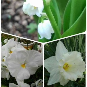 わが家のスイセン4種💛 上段左➡ツートンカラーのラッパスイセン 去年は葉っぱだけツンツン出ただけ💦今年は咲いてくれました✨ 上段右➡単色のラッパスイセン 4種の中で一番乗りで開花🙋 下段左➡ホワイトライオンはゆっくりお目覚め😪 まだ眠そうです😁 下段右➡「チェリー🐕も写してあげてくださ~い♪」と、斜めにポーズをとってくれた優しいピンクチャーム😉