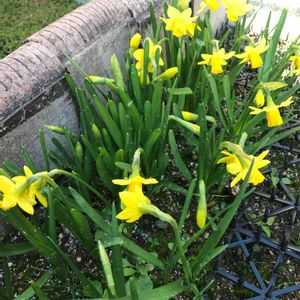 いつもながら…、遅いッスね。うちの花壇の咲き具合。笑 ラッパ水仙が、ポツポツ咲きはじめました🌸