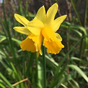 最近色んなお花が咲きだしてどれを投稿しようか迷ってしまいます😅 んで、今日は双子のラッパ水仙を発見したので✨ 1本の花茎から2つのお花がひっついて咲いてます♪ 蕾の時はどんなだったんでしょうね☺