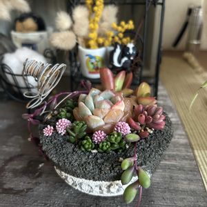 こんにちは😃 先日行った横浜のGSマルシェで GETした多肉を やっと手に入れた コンクリート鉢に多肉の寄せ植え🌵