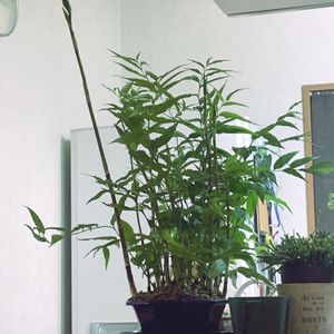 ピーン↑↑↑ 2ヶ月かけて筍から竹に変化しつつあります(笑) 水遣りした次の日の伸び方はハンパないw 竹葉ランよ、どこまで伸びるのだ?🙄