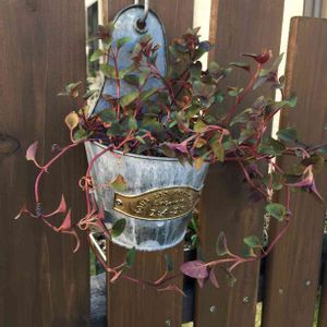 割れてしまった植木鉢の半分と満開のリシマキアペルシャンチョコレートで遊んでみました😁 こぼれているように見えるかな?