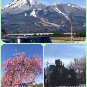 おはようございます🤗 磐梯山と喜多方の枝垂れ桜🌸 今日もほどほどに頑張りましょうね🤗