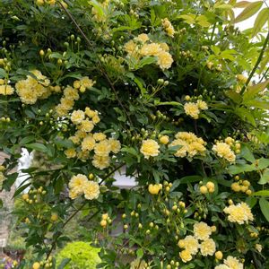 モッコウバラ🌹咲き出しました😃 九州の方はもうとっくに咲いて、インスタとかでは強い雨で散ってしまった📝と出てましたが、うちはこれからです。 東京の郊外だけど、とにかくなんでも遅いかも😅近所で咲き出しても、うちだけ遅かったりなんです💧