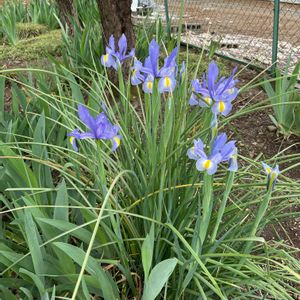 母親の庭の端にあるアイリス畑です😃 たたみ4枚分くらいの場所で、梅の古木とあんずの木の下にジャーマンアイリス中心で広がってます。 ジャーマンアイリスにも強い弱いがあるようで、紫もありますが淡いオレンジにエンジ色の花が多くなっています。 ジャーマンアイリスはまだあまり咲いてきてなくて、下の方に見える幅の広い葉がそうなのですが、クリアなブルーで黄色のワンポイントのアイリス🌿葉がスッとしていて、明らかに違うのです✨ 母の記憶だと、数年前誰かにもらったと😅 だから、名前はわからないとのこと。 ネットで調べても、あやめ、カキツバタ、花ショウブと色々あって、よくわからないでいました。今ひとつ、コレ❗️というものがなくて、なんだろう???と思ってましたが、今朝グリーンスナップの投稿で、同じ❗️が見つかり、アイリスと投稿されていたので、「アイリス 細葉」とネット検索したら、「ダッチアイリス」でヒットしました🙆♀️葉の形も咲く時期が早いのもぴったり。やっと、スッキリしました✨ ありがとうございます😊