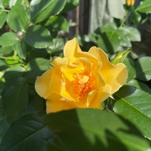 バラ 金蓮歩キンレンポです🌹 中国の美人が歩く様という意味からもわかるように、優雅なフリルの花はとてもステキ💕 花びらの枚数が少なく、もう少し開くと花芯の濃いめのオレンジとのバランスもまた良しです✨ 黄色いバラは(モッコウバラを除く)うちの庭には合わないなぁと思ってましたが、このバラなら🌹とお迎えし、大鉢で育てています🪴 鉢植えエリアで、サーモンピンクのローブリッターやドリフトローズのピーチ🍑 ホワイトピーチオベーションなどと並べていると、それほど浮き立つことなく庭になじんでる気がします😁