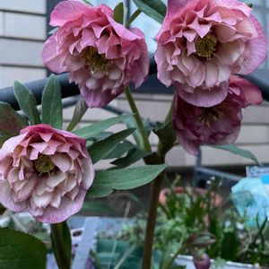 2020.12.5に花芽の写真を投稿したクリスマスローズ🌸こんなに立派に咲きました😃 花芽の数がすごいとは思いましたが、まさかここまでボリュームが出るとは✨✨ 左から童仙房のマエストロ、アイスブレーカーマキシー、シューティングスター、後ろがモンテクリストです。 先週の雪予報❄️で玄関ポーチに避難させたので4鉢揃ったところをパチリ📸 実は右の二つが雨☔️霜のあたる過酷な環境で、左の二つが軒下で大切に育てたものです。明らかに自然に近い環境で育てた方が良い株になっています😃