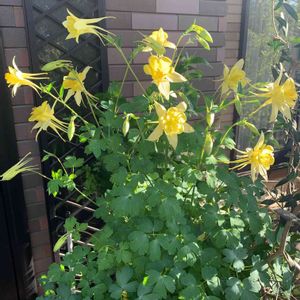 西洋オダマキ イエロークイーンです😀 黄色のオダマキ🌼存在感ぎあります。 花は宿根して2年目ですが、70センチくらい。ここまで大きくなるとは思っていなかったので、寄せ植えしたタイツリソウや桜コデマリ、アジュガ等々がどうなっちゃうのか、ちょっと心配です😅