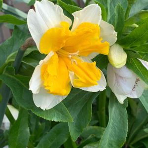 八重咲きの水仙🌼今年も咲いてくれました☺️黄色のグラデーションがなんともいえない美しさです✨ こちらの水仙、ボーダー花壇の南東の角という好立地に植えられているけれど、つぼみまでは行くが、花が開かなかったり、八重咲きで頭が重いので風の強い春には倒れてしまったり、いつもヤキモキさせられます。植えてから5年くらいはたっています☺️