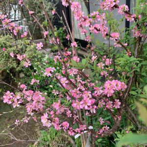 先日、一花目が咲いた写真を投稿したユスラウメ🌸数日で満開になりました☺️ うちのは濃いピンクですが、他の方の写真を見るともっと白っぽい花が多く、本当にユスラウメか?と疑ってしまいますが、私はラベルを残す人なので、ついているラベルにはユスラウメと書いてあります😅 実はいつ買ったか記憶がないくらい古く、あまり大きくない鉢に🪴植えられているので、これまで花は見ても赤い実は見てないような‥もしかして鳥に先に食べられてる⁉️状態だったので😅今年こそは赤い実を味わってみたいと思います。