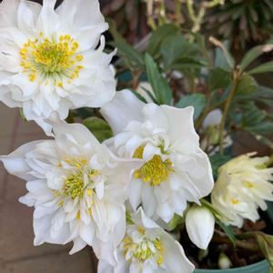 鉢に植えてある白の八重咲きのクリスマスローズ。昨年までは確かに純白だったのに、今年はフチが少しピンクがかっています☺️ 今年の冬は朝の気温が低く、おそらくマイナス3度くらいまで下がっているので、寒さで色づいたのかな❄️