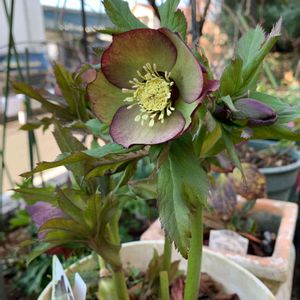 ワイン色の八重に一番外の花弁だけグリーンが入るこのクリスマスローズ、朝日を浴びてキラキラ✨しています。 どこかで買ったクリスマスローズの鉢のひとつくらいにしか思ってなかったけど、今年はやけにキレイなので、鉢の端に押し込んであったラベルを確認。そしたら、消えかかった文字で花郷園と書いてあったんです🤭 確か4年ほど前に野口さんの講習会を聞いて、レッドサンを買った時もう一つ買ったのかもしれません😅レッドサンばかり気にしていましたが、こちらも大事にしないとです🌸