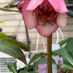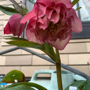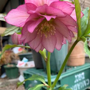 ミヨシのクリスマスローズ エレガンスフレアピンクです☺️ 名前にぴったりな優雅な八重咲き。 花茎が長く、花も大きいので、極寒❄️の朝霜で倒れていることが多く、心配でしたが、きれいに咲いてくれました🌸