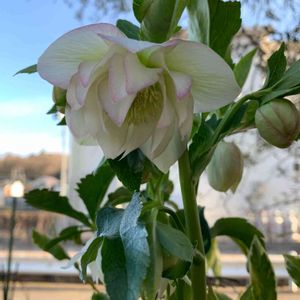 童仙坊のクリスマスローズ モンテクリストです🌿今朝見たら、色が変わってきて、朝日に照らされ輝いてました✨