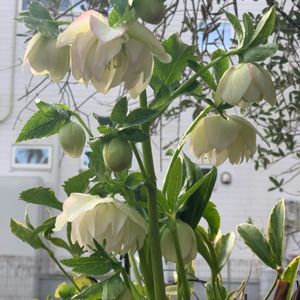 ミヨシのクリスマスローズです😀 クリスマスローズではご法度の10センチほどの深さしかない平鉢に、たくさんの苗を詰め込んでいます。水はけが良いのが気に入ってくれているのか、よく咲いてくれます。 今年は植え替え時だったので、思い切って並び順を替えてみました。左からローズリップル、ホワイトオーケストラ、プチドールあや、しおりです🌸