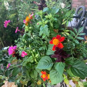 昨年作ったピンク系のハンギング、ジニア、ペチュニアは消えてしまったけれど、ピンクのブラキカムとユーフォルビア、ハツユキカヅラ等は冬を越えたので、リメイクしました☺️ ピンクのブラキカムに合う花を‥と探しに行くと、いつも気になるムラサキのサルビア、マリーゴールド ソラン、ピンクのトレニアが8個セットのピット苗で売っていたので、これに決めました。普通はサルビア、マリーゴールドのような上に伸びる花はハンギングには使わないと思いますが、たまには冒険してみてもいいかな‥ 葉物も🌿たっぷり入って自分としては出来ばえに満足しています☺️