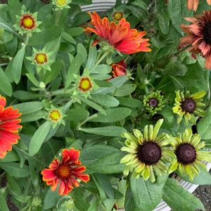 昨年の夏植え付けて、冬越しした寄せ植えです☺️ルドベキア アーバンサファリは渋いグリーンとブラウン。シックな色が好き💕なので、どうしても2色とも欲しくて‥ でも、色が渋すぎて鉢が暗くなってしまうので、ガイラルディア サンドリームオレンジ🍊の元気色を合わせました。 冬越しはできるかどうか心配でしたが、暖かい冬だったので、軒下で越せました✨葉も🌿元気だし、つぼみも次から次に上がっていて、昨年植えた時より格段に良く咲いてくれています😀