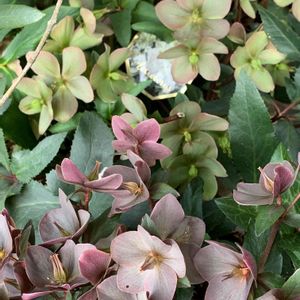 先日、水仙とクリスマスローズの写真を投稿した場所の今日の様子です☺️ 一気に春が来て暖かいので、クリスマスローズもぐんと伸びました🌿どれもが、自分が一番と朝日に向かっている気がします。 一番手前が、ミヨシのクリスマスローズ、チェリーシフォン🍒で、その向こうは、すべて自然受粉です。 以前は、メリクロンのミヨシのクリスマスローズは鉢植えで、自然受粉のものは花壇でとなんとなく決めつけていましたが、昨年、野々口先生のクリスマスローズ教室に参加し、広々とした昭和記念公園にミヨシのクリスマスローズを種類ごとに群生させてるのを見て、花壇に下ろしてみようと思いました☺️いろんな方の意見を聞くことって大切ですね。