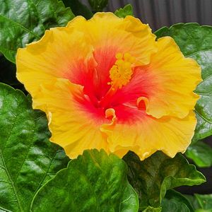 おはようございます🌞 ビタミンカラーのハイビスカス🌺が咲きました 秋に短くカットしてから初めての開花です