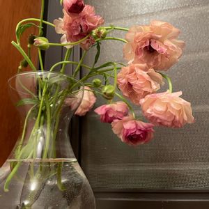 昨日の強い雨に☔️うたれてしまった ラナンキュラスラックスのアイオリア🌸 株を整理して🪴休眠期の準備をしたので、最後の花は切花にしました😊 茎が踊ってしまっているので、ちょっと高い位置に飾りたかった。 トイレの出窓となりました。 それでもやはりかわいい😍