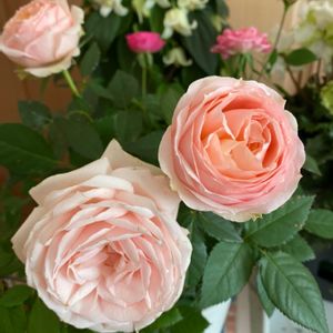 四季咲きミニ薔薇なのに、大輪咲き ベラミーさん 今日も元気に花の数を増やしてます‼️ 地植えのバラたちが、選定され始めて見られない今 部屋の中で、たくさん咲いてくれてます❣️