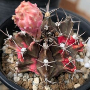 こんばんは☺️ 今日はちょっぴり暖かでした🔅🔆 太陽が照ってくれると本当に嬉しいです。 なのでなかなか植物達を家に取り込めない😝💦 まだいいか まだいいかと先延ばしに 週末は急に冷えるらしいのでそろそろ(꒪ཫ꒪; )ヤバイ? ギムノカリキウム 緋牡丹錦❣️ この子はうちに来てから5年目になりますが、下の方がシワってきて随分貫禄が出てきました🌵💕 成長はゆっくりですが、7稜だったのが今は8稜に まだまだ大きくなっていつまでもそばにいて欲しいです🥰🥰
