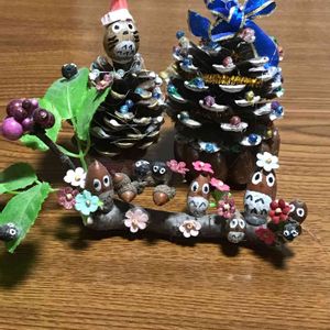 こんばんは🌇 どんぐりトトロと松ぼっくりのツリー クリスマスぽくして見ました‼️