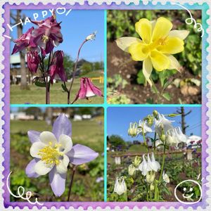 おはようございます😃 今日も皆さまにhappy〜💕 近所の公園にオダマキだけの花壇がありました♬かわゆす〜💕 ②〜近くの牧場にて〜🫏🐄 孫たちのお気に入りの場所になりました♬ 牛さんは見れませんが人懐こいポニーと孔雀が目の前で見れます♬孔雀の羽を広げた瞬間〜🦚こっち向いて〜🤭