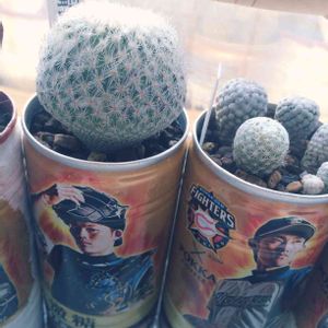 サボテンさんお仲間入り♪ 日ハムの大野缶と増井缶に植えました(笑)