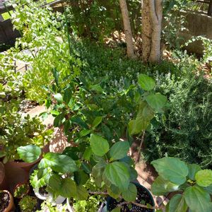 朝日が当たる東側のエリア。 日中は金木犀がちょうど良い日陰になる。 奥にはドクダミさんが満開😆 ほかに小さい鉢で ミントやシソや挿し木にしたゼラニウムとか💕 柵の向こうはお隣りさんのお庭。 綺麗な花がたくさんあります。 時々お隣りさんのお花のこぼれだねで 我が家のほうに知らない花が咲くことも☺️ このキラキラした初夏の雰囲気が好きですね✨