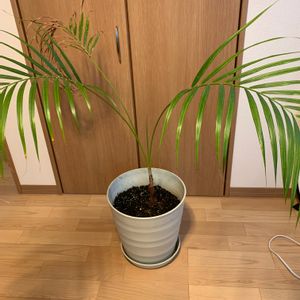 12年間室内で鉢替えもせず育てていたアレカヤシを株分け。根がパンパンで半分くらい株枯れてました💦 一株のみ室内に。一株だけの方が格好いい気がします🌴