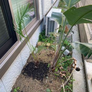 残りの株は軒下ですが北西風、西日がモロ当たりの場所へ地植え🌴 耐えてくれたら地植えできるヤシの選択肢が物凄く増えてくれそうです🌴