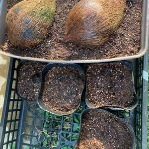 インドネシアから帰ってきた近所の人がヤシの種を何種類かくれたのですが、なんの種かよくわかりません🌴ココヤシですかね?だとすると日本では厳しいですね😅 小さい種はもはや全く謎🌴