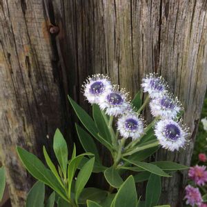去年お迎えした地中海原産の低木! 鉢植えですが軒下で冬越しして お花が咲き始めました😊 学名のグロブラリアは「小さな球」 と言う意味らしいです✨ 瑠璃色のお花がほんと素敵💗