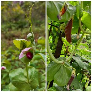 花では無くって 左 ← エンドウ豆の綺麗な紫色の花 左 ↓ 紫エンドウ豆 右上 ↗️ 黄緑色の豆 右下 ↘️ 半日たつと、 お赤飯の用な色に成りました。 昨夜の豆ご飯でした(笑) 見事なツタンカーメンの転回 素晴らしい ✴️✴️