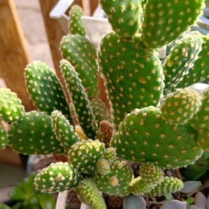 ドカッ‼️ opuntia fragilis var .denudata 実はすっごく小さい💦ポテトという愛称があるらしい。 真冬もずっと屋外でシワシワになりながら頑張り💪、暖かくなって水を与えたらプックリしましたꉂ🤣🌱