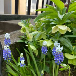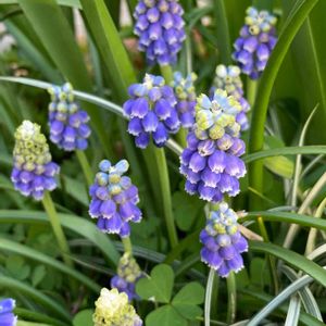 ムスカリ タッチオブスノーが咲き始めました💜💙 タグはブルーなのに…パープル⁉️なんでかな〜💜 これまだ途中だけどグリーンが出てきて💚 これはこれでいっか😆 1番上は白のはず😅 どうなる事やら…💦💦 葉っぱは昨年から伸びに伸びてますが…✂️せずにそのまま我慢しました🌿🌿