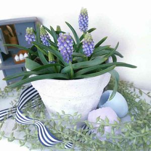 雨の日に撮影しました☔️ 水色の飾りを付けたムスカリちゃん💕 来年も会えるといいな🤗