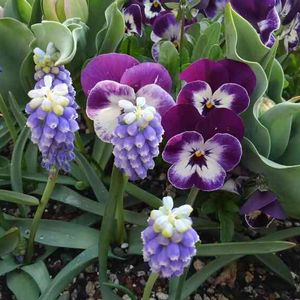 ムスカリも咲きました。ビオラもフリルパンジーもいっぱい咲いてくれました☺️